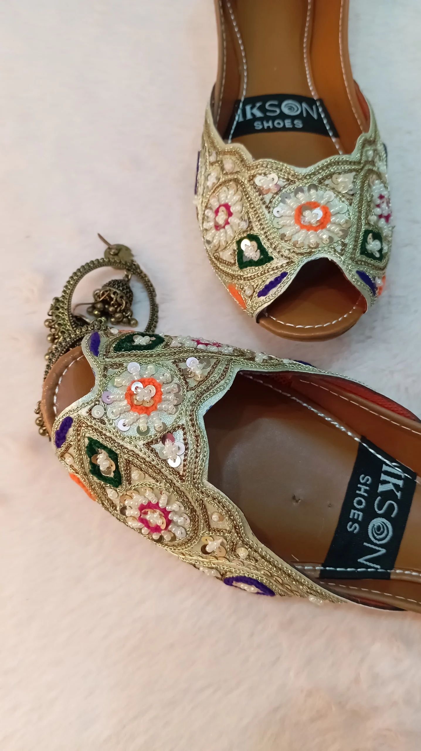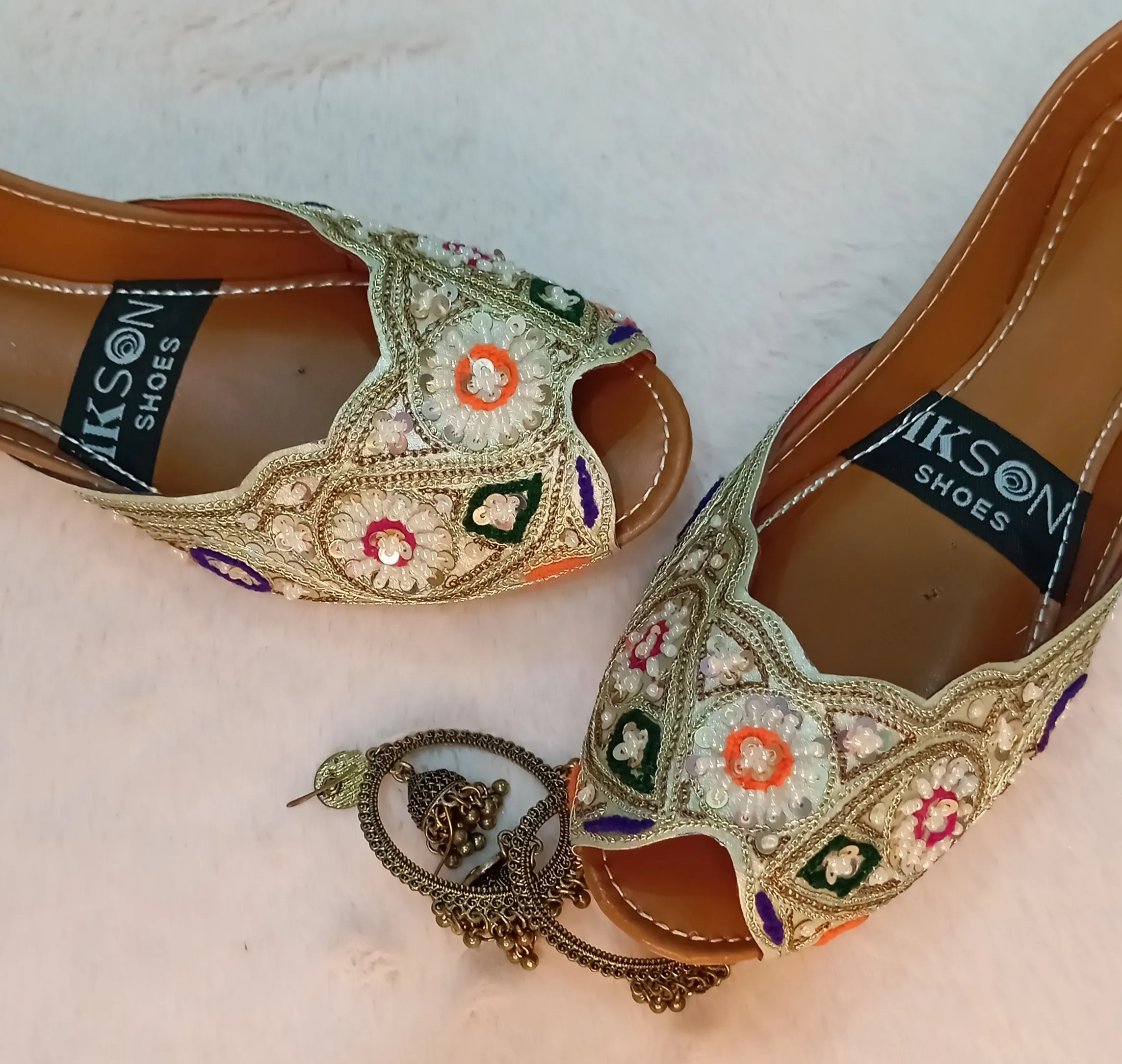ikson Shoes Women’s Khussa. Crafted with cutdana ,moti and sitari embellishments, these sleek and stylish shoes are perfect for adding a touch of elegance to any outfit. The PU sole and Synthetic-Mix top material ensure durability and comfort for all-day wear. Ideal for formal occasions or adding a trendy flair to your everyday look